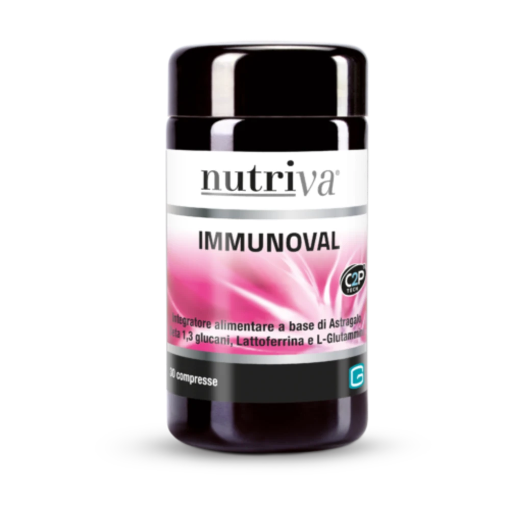 Nutriva IMMUNOVAL è un integratore alimentare a base di estratti vegetali utili nel sostegno delle difese immunitarie. L’astragalo è un rimedio naturale che, grazie all’elevato contenuto in polisaccaridi, supporta il sistema immunitario. L’astragalo è molto utile nel caso di raffreddore e influenza. I β-glucani e la lattoferrina sostengono il sistema immunitario in maniera equilibrata. L’aggiunta di L-glutammina fornisce un valido sostegno alle naturali difese dell’organismo